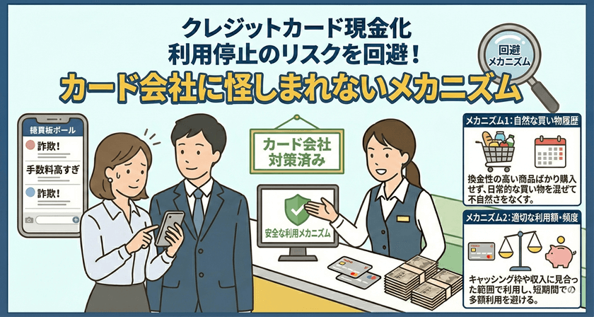カード会社は、会員が代金を支払えなくなった場合のリスクをショッピング枠の設計に含めていますが、現金化はそのリスク許容度を無視する行為です。現金化業者が関与する場合、多重債務者や資金繰りに窮した利用者が高頻度で利用するため、カード会社側の貸し倒れリスクが急増します。このため、ほとんど全ての会員規約には、資金調達を目的としたカード利用を禁止する旨が明記されています。